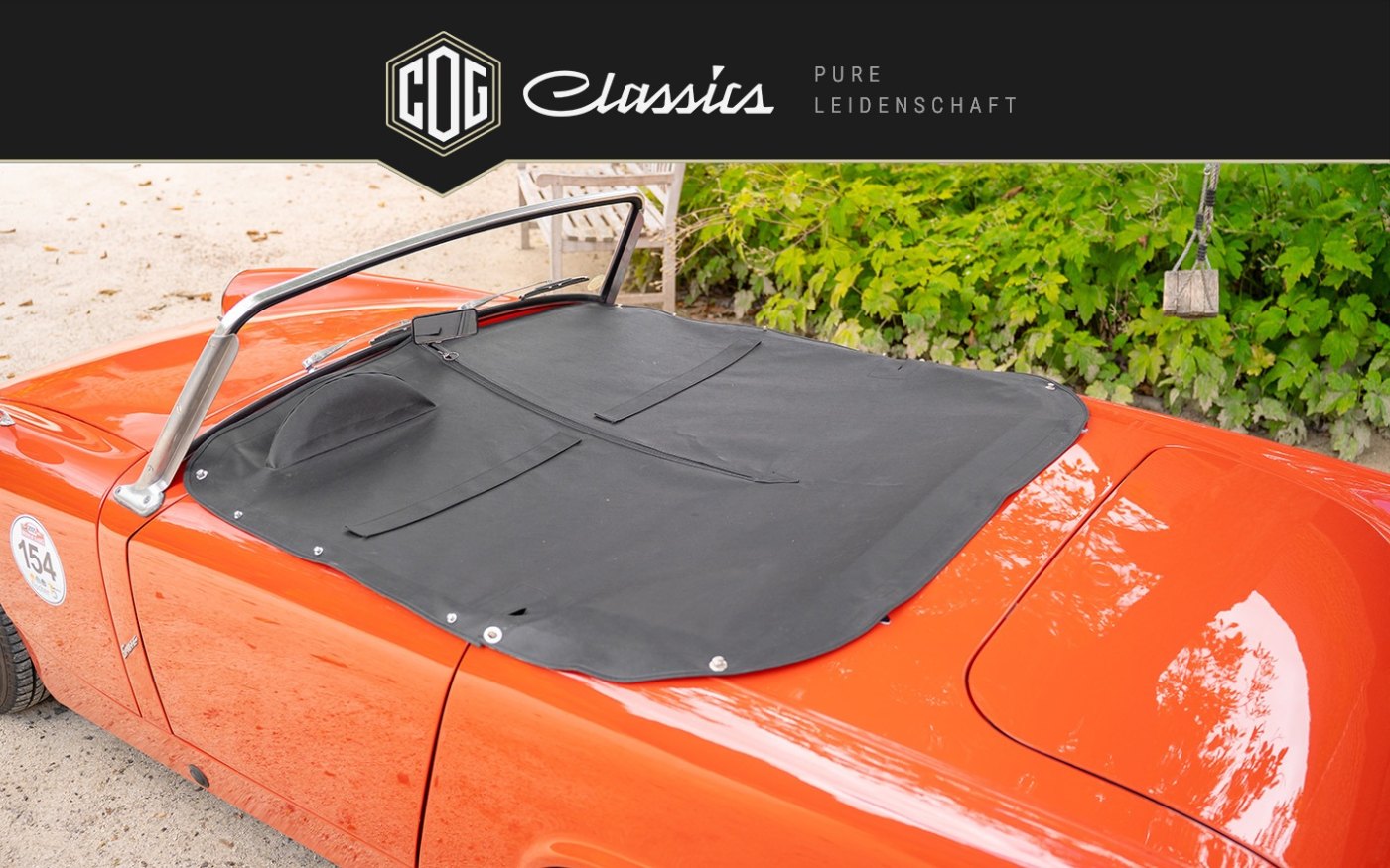 Der aktuelle Besitzer erwarb den Wagen im April 2024 und ergänzte ihn um eine originale Persenning aus England, die das klassische Erscheinungsbild perfekt abrundet.
