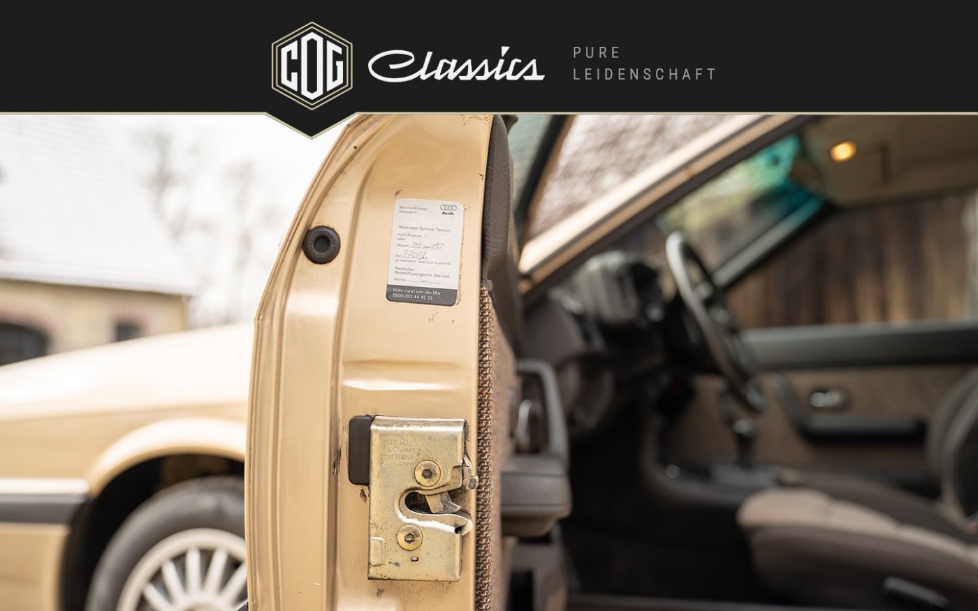 Since the power output of 75 hp did not really fit the sporty coupé character and the sales figures for the smallest coupé model at the time were anything but satisfactory, it was decided to raise the entry-level engine for the coupé to 90 hp. The newly developed engine with a displacement of 1.8 liters and a modern 2E2 carburetor simultaneously replaced the previous 85-horsepower four-cylinder in the Audi 80. The new engine combined nimble handling characteristics and a top speed of 170 km/h with economical fuel consumption. This coupe, painted in almond beige metallic, rolled off the production line in Ingolstadt on March 17, 1987. In March 2020, Mr. W. bought the vehicle and had an expert opinion drawn up with a mileage of only 74,760 km. The appraisal gave the Audi a grade of 2+. The vehicle is partially still in its original paint and in general one can speak of a fantastic condition of this Audi. The owner had a vehicle identity certificate and a vehicle data sheet drawn up at Audi. Before the car leaves us it will get a new service, as well as fresh MOT.