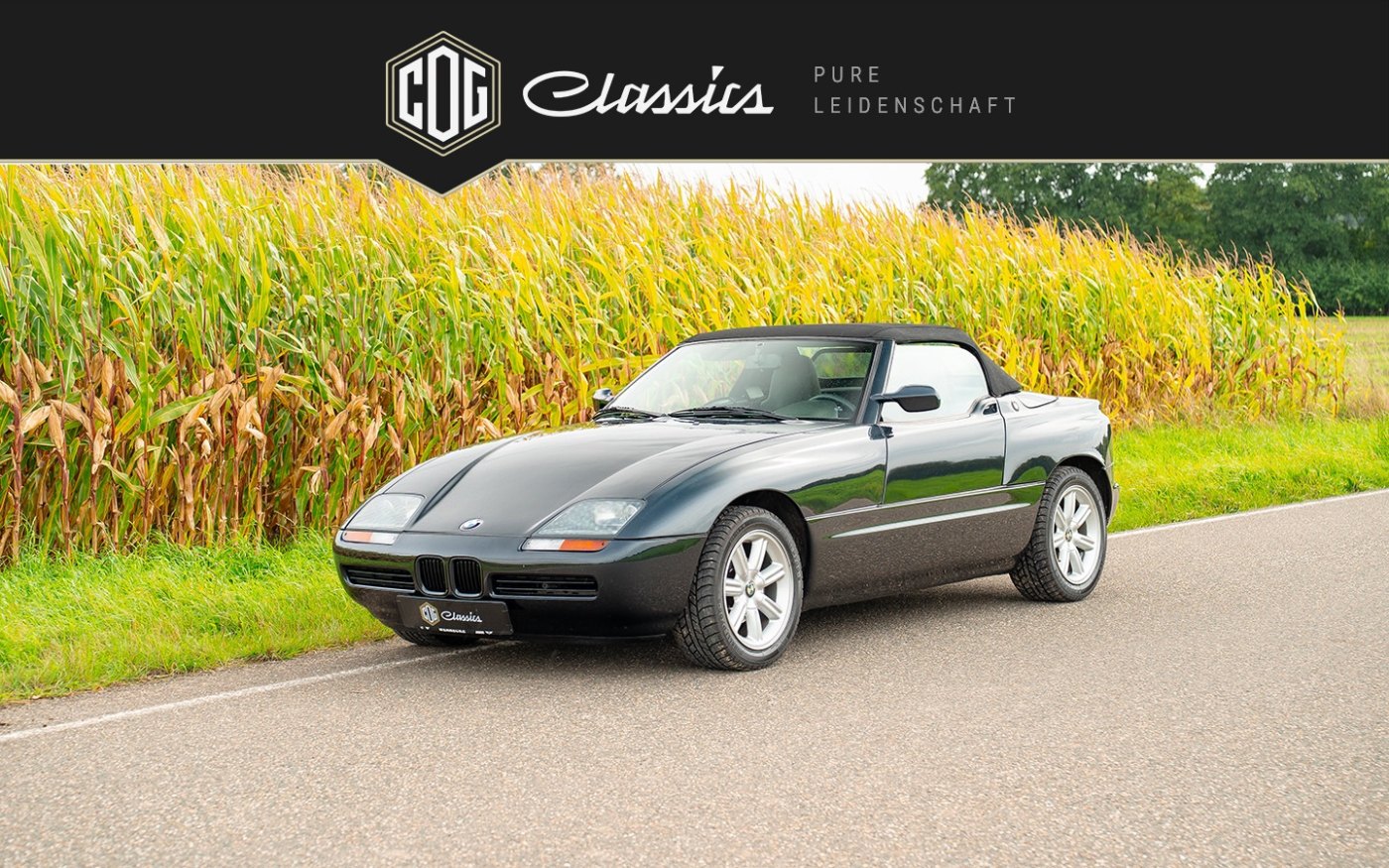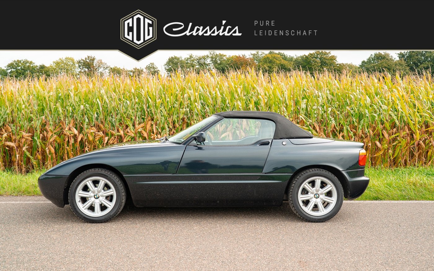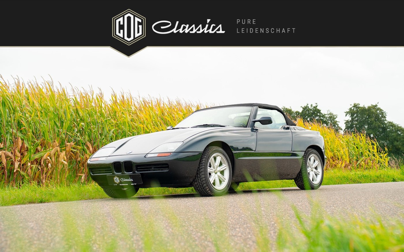 A 1989 BMW Z1 in the rare color Dream Black Metallic with the coveted camouflage interior. The vehicle was delivered on October 3, 1989, in Berlin to a managing director who first used the Z1 as a company car and later registered it privately. In 2016, the Z1 changed hands to its current owner, also in Berlin. To date, the roadster has been accident-free and is in its original condition. Only the hood has been professionally repainted once due to stone chips. Under its current ownership, the Z1 has been serviced exclusively by BMW, and all invoices and documents are available in full.