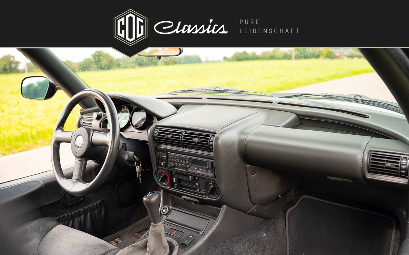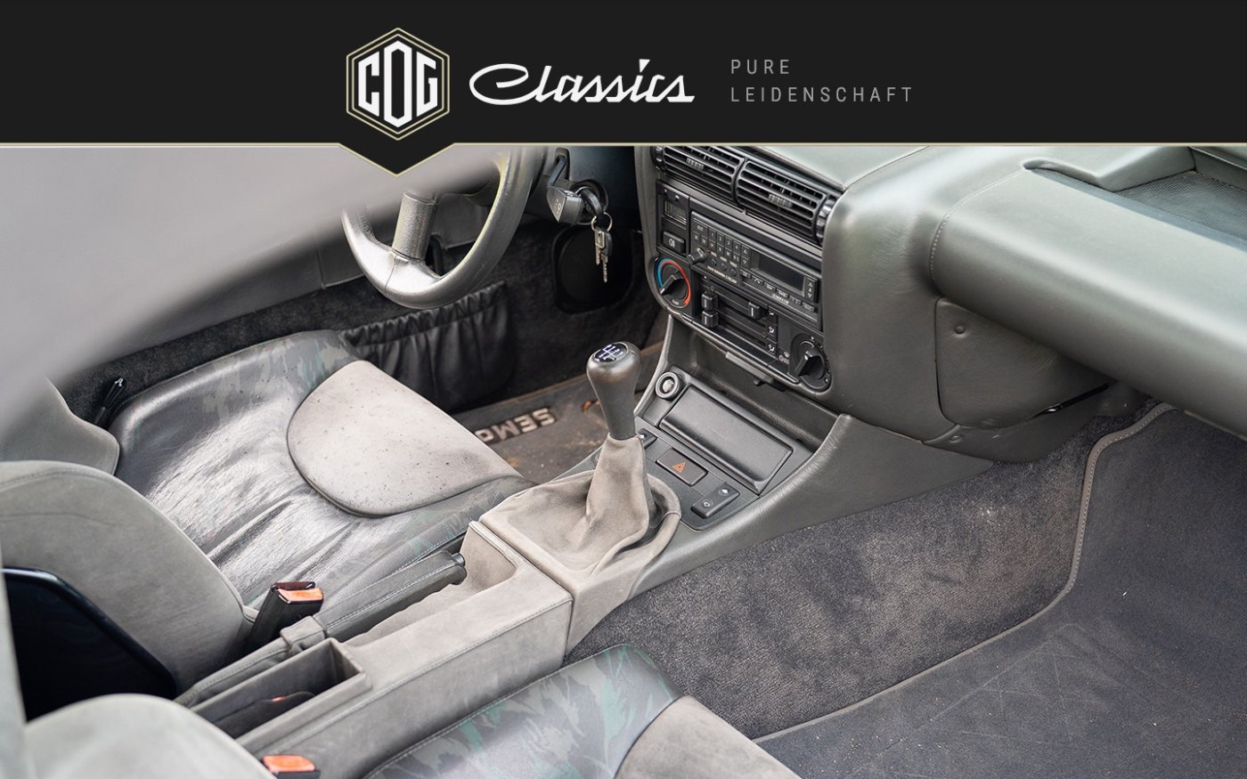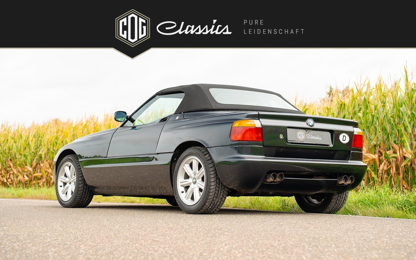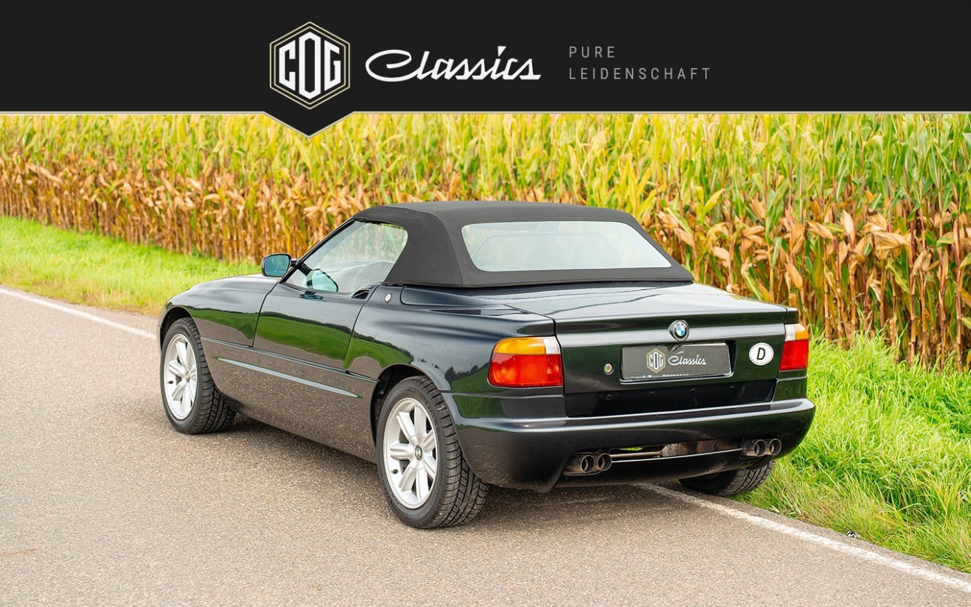 A 1989 BMW Z1 in the rare color Dream Black Metallic with the coveted camouflage interior. The vehicle was delivered on October 3, 1989, in Berlin to a managing director who first used the Z1 as a company car and later registered it privately. In 2016, the Z1 changed hands to its current owner, also in Berlin. To date, the roadster has been accident-free and is in its original condition. Only the hood has been professionally repainted once due to stone chips. Under its current ownership, the Z1 has been serviced exclusively by BMW, and all invoices and documents are available in full.