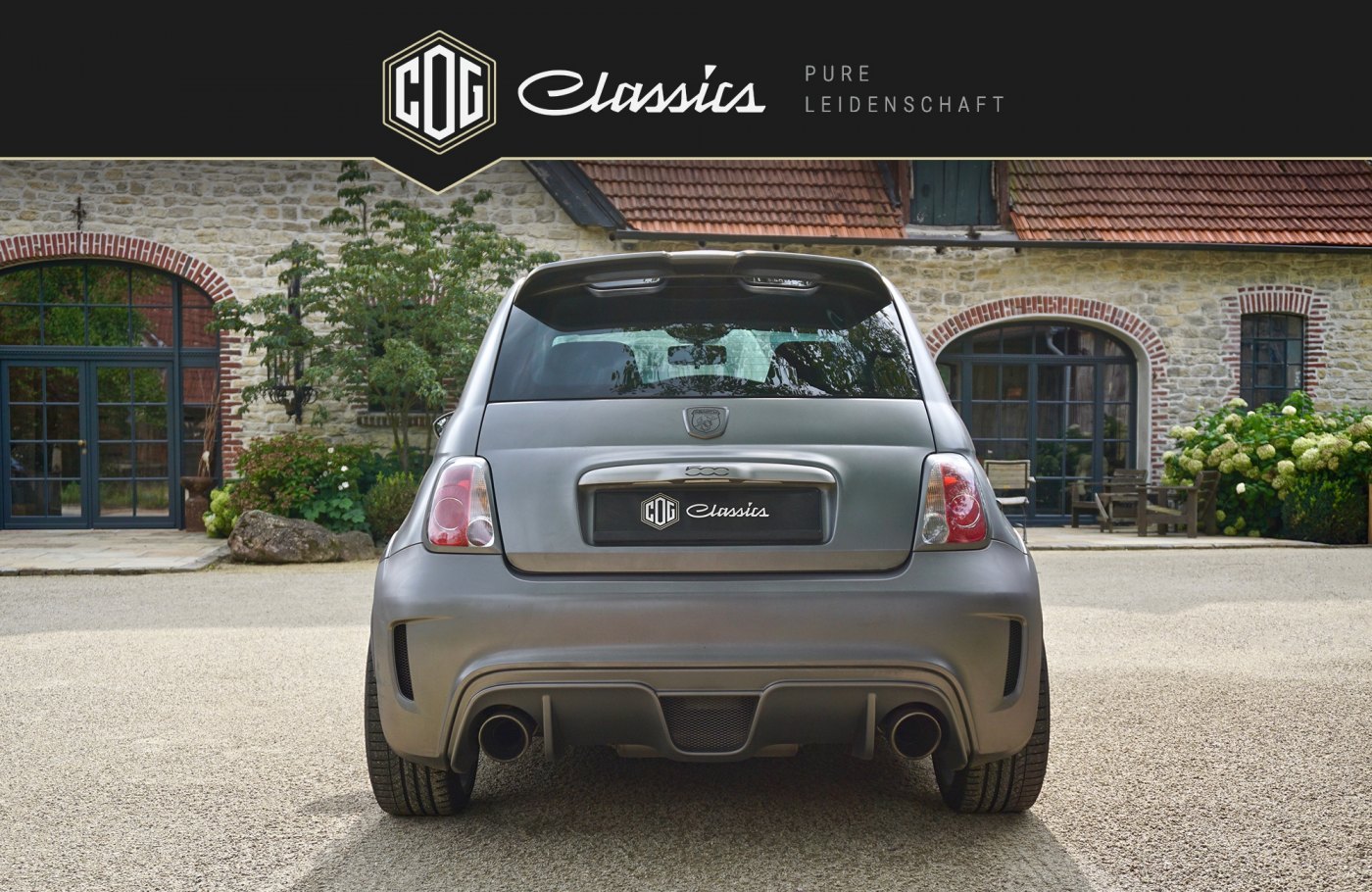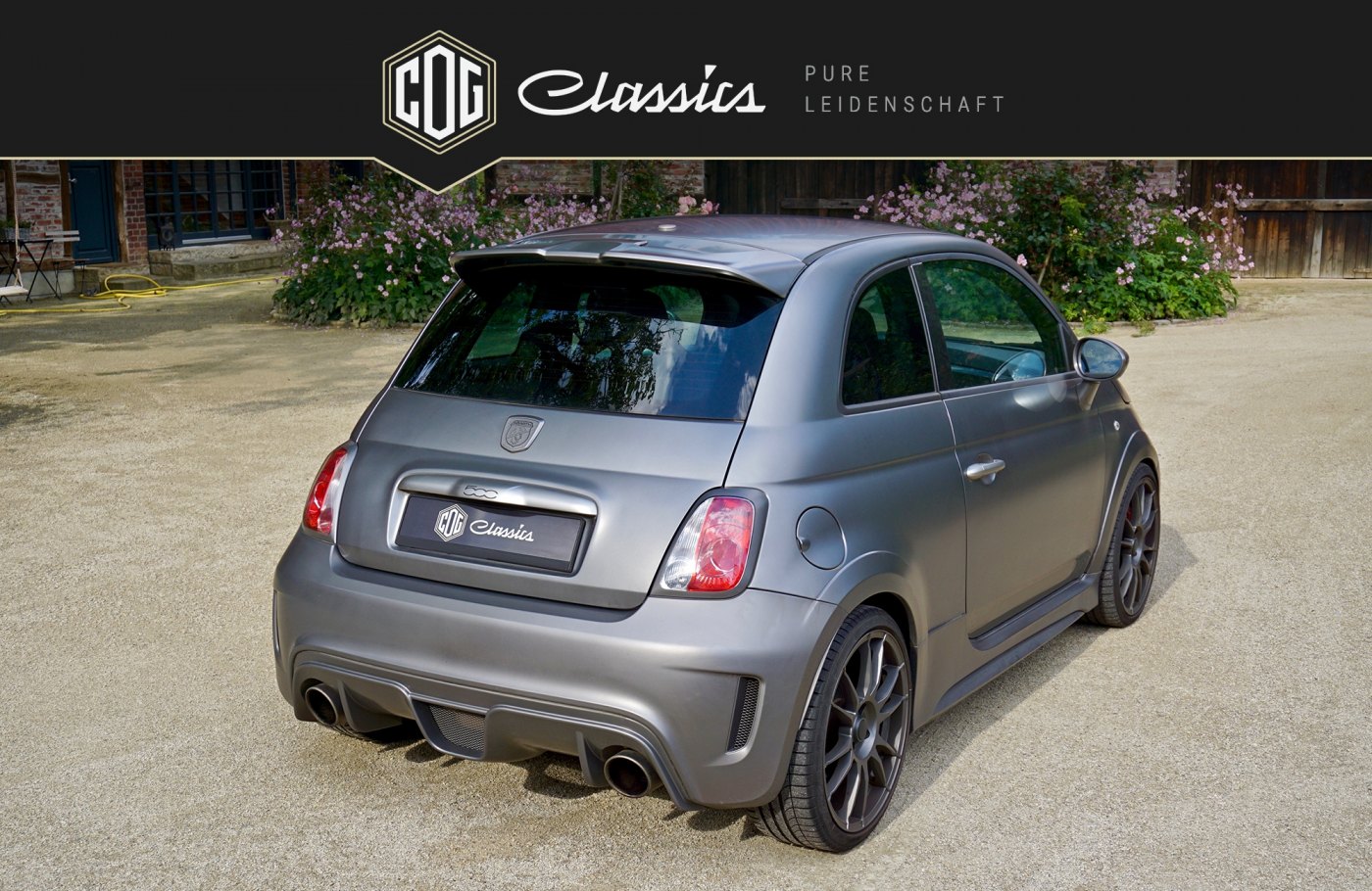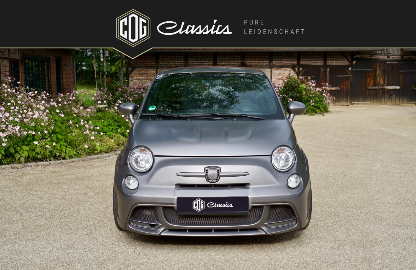 This special edition model “Abarth 695 Biposto” is the first Fiat 500 that can even stand up to big candidates by other manufacturers in regards to cubic capacity. It is without a doubt the smallest and most powerful sports car ever built. The approved-for-the-street vehicle with ex factory racing interior includes an upgrade turbo charger kit as well as a HJS 200 cells sport converter and runs on a custom-built Bilstein coilover suspension. These upgrades built in at Fiat increased the original purchase cost by 10,000 €. Additionally, our 695 Biposto exemplar remains the only one among all the specially produced units that features electric window regulators (no sliding windows) matte grey emblems, a matted grey hood and full carbon elements also painted matted grey ex factory. The original price was about 69,000 €