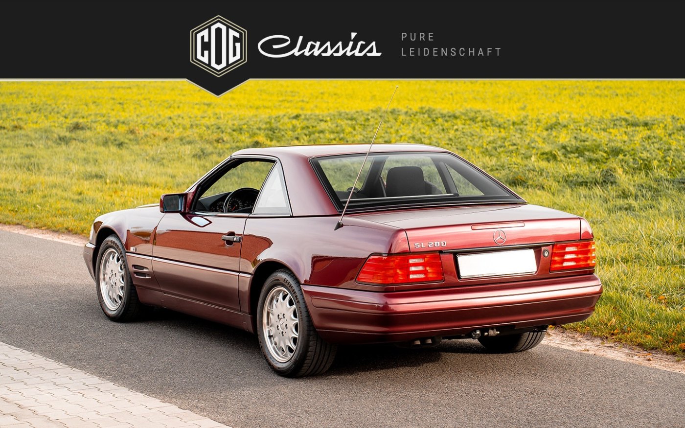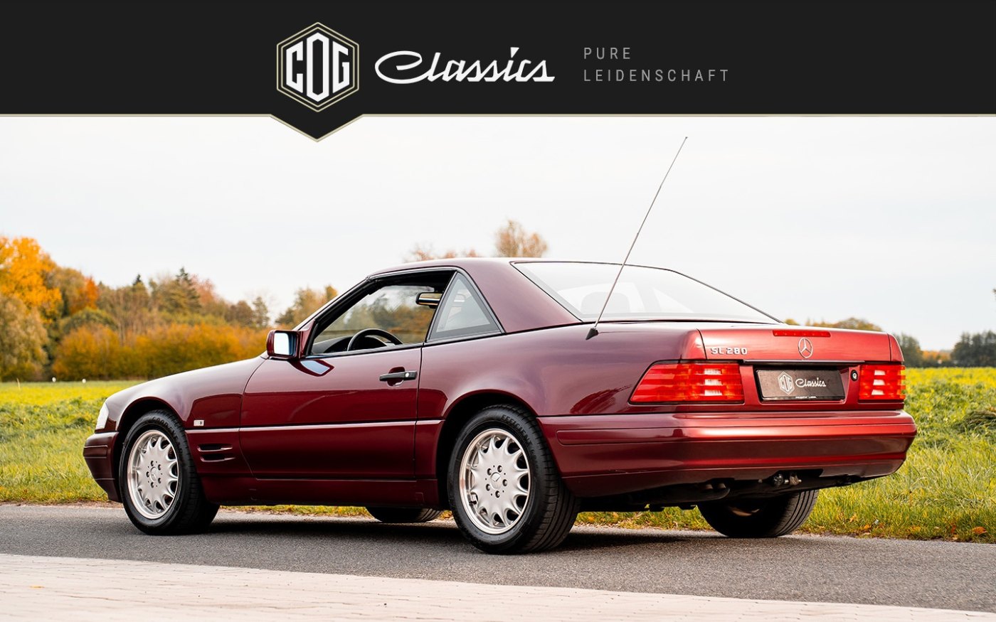 The Mercedes-Benz SL (R129) represents the golden age of classic roadsters like no other: clean lines, technical perfection, and timeless elegance. This SL 280 in ruby red metallic embodies exactly that—a car that has accumulated more history than miles.
