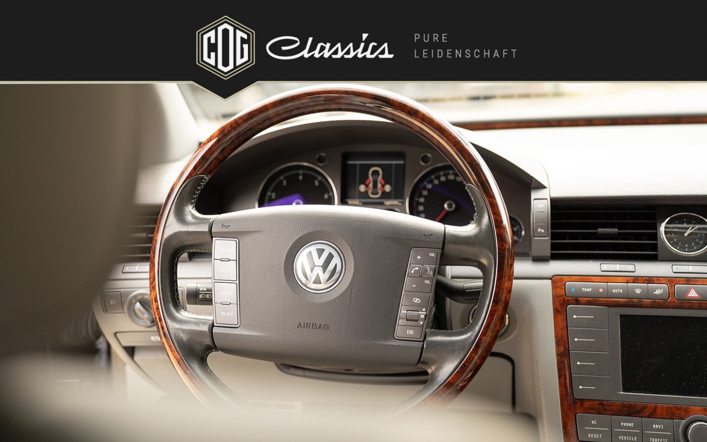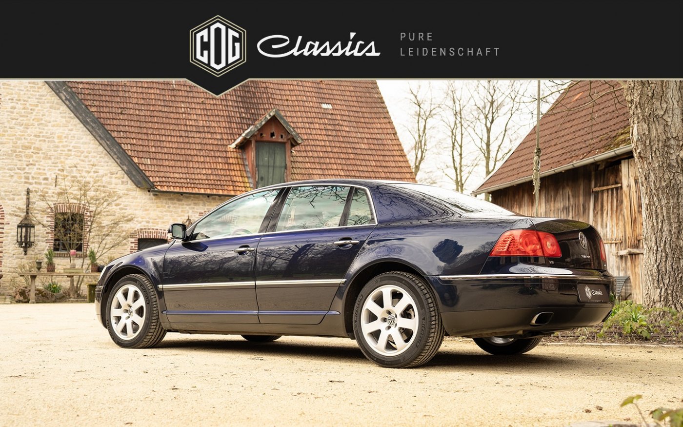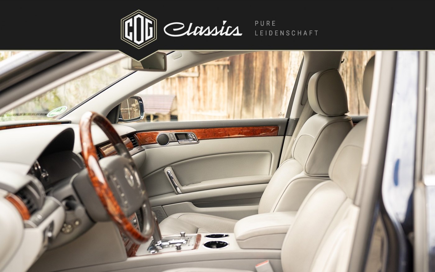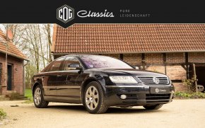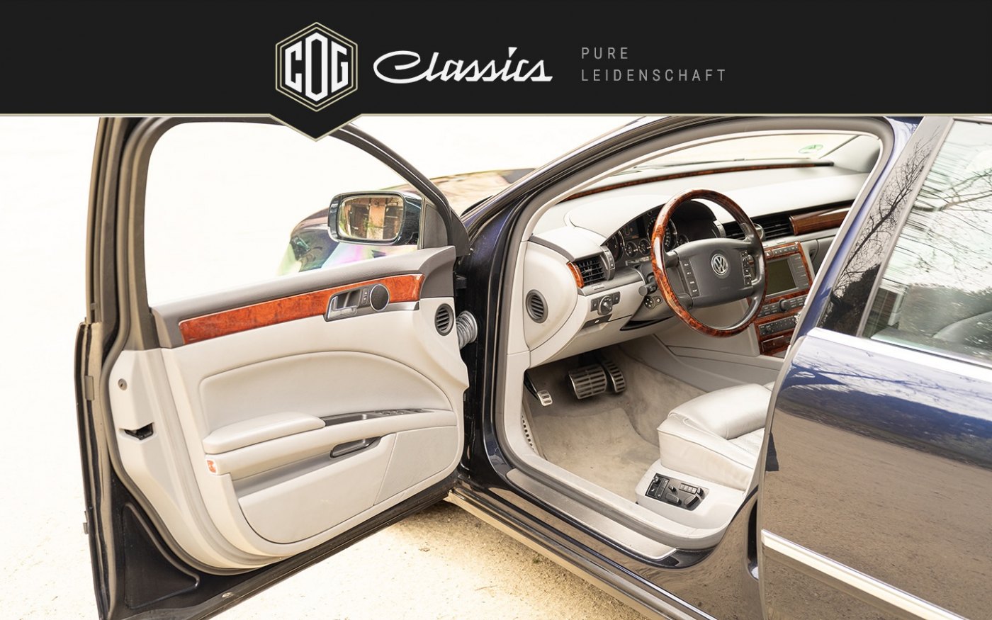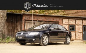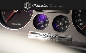 This Phaeton, painted in deep dark blue, was delivered in 2003 and had a new price of approx. 100,000 € including 25,000 € equipment. The current owner from Herne then took over the vehicle in 2018 with a mileage of approx. 65,000 and has driven the VW regularly since then. Mr. G. always had all work, repairs and service intervals carried out on time. We have all invoices and documents relating to the vehicle.