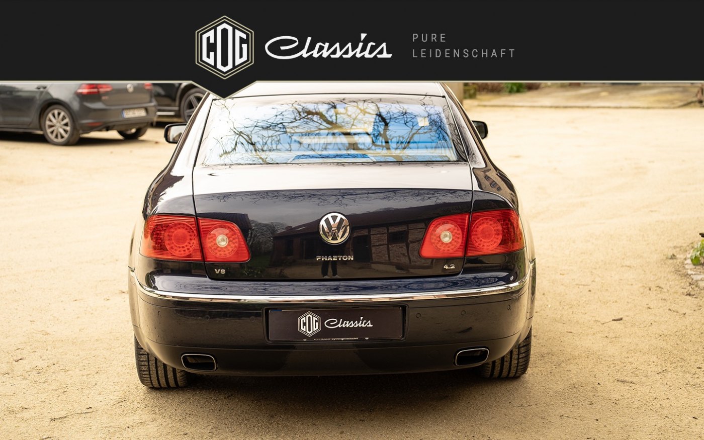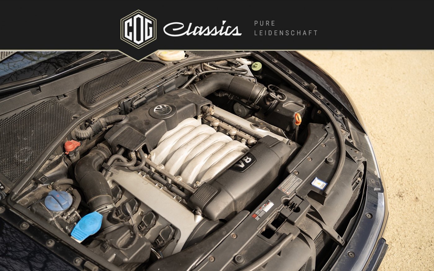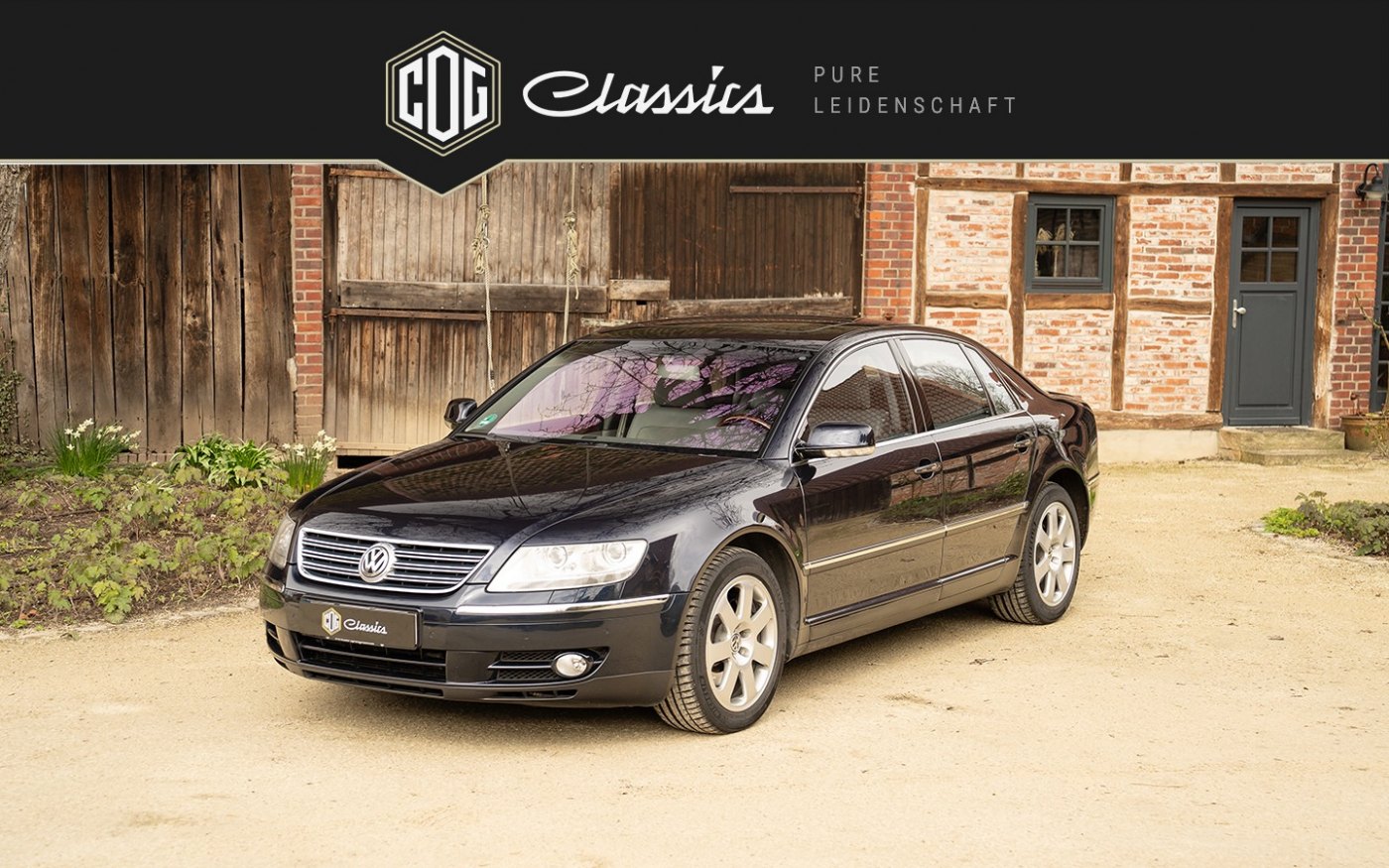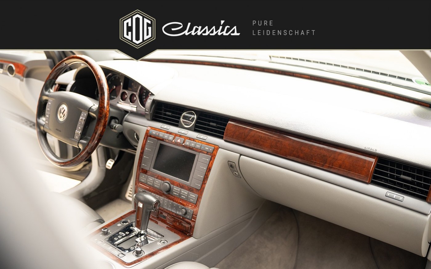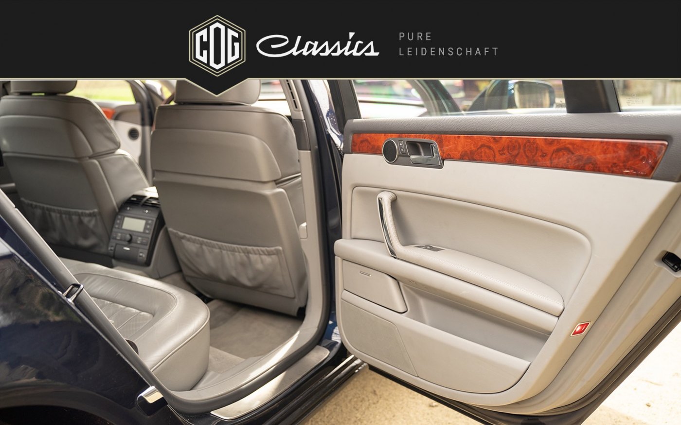 This Phaeton, painted in deep dark blue, was delivered in 2003 and had a new price of approx. 100,000 € including 25,000 € equipment. The current owner from Herne then took over the vehicle in 2018 with a mileage of approx. 65,000 and has driven the VW regularly since then. Mr. G. always had all work, repairs and service intervals carried out on time. We have all invoices and documents relating to the vehicle.