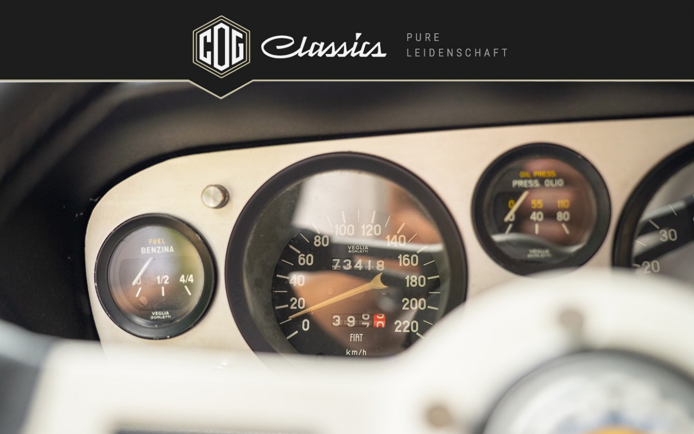 Wer Fan von italienischen Rally Autos ist, kommt an einem Fiat Spider Rally nicht vorbei. Unser Fahrzeug ist ein Original von 1973 und wurde in Italien das erste Mal ausgeliefert. Im Jahre 1986 wurde das Fahrzeug nach Deutschland verkauft und blieb 18 Jahre lang im Besitz des nächsten Eigentümers. Der Spider ging dann nach Österreich und im April 2016 zu seinem aktuellen Eigentümer. Dieser ließ den Motor bei der Firma Aumüller komplett überholen. Seit dieser Motorrevision ist der Abarth nur ca. 2000 km bewegt worden, also gerade mal neu eingefahren.