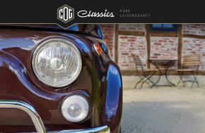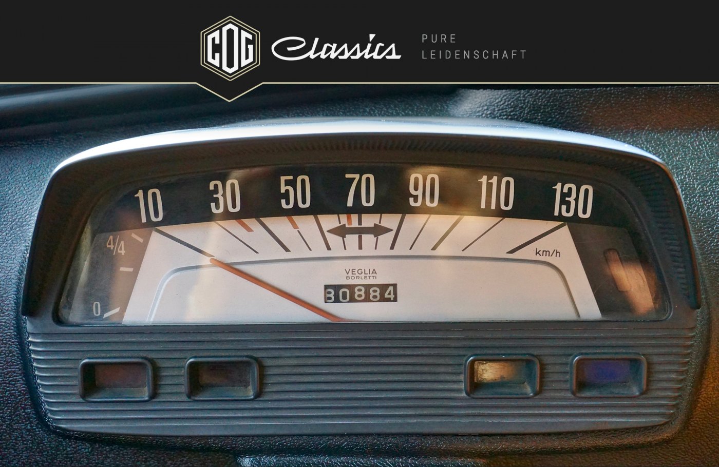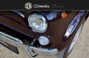 Der Fiat 500 ist die wohl süßeste Versuchung seit es Automobile gibt und nicht umsonst das sympathischste Fahrzeug Italiens. Unser 500er Coupé in der begehrten "L-Version" stammt aus Rom und wurde 1968 zugelassen. Die L-Variante (Luxus) wurde im Vergleich zu seinen Vorgängern deutlich modernisiert. Die Zusatzbezeichnung rechtfertigte sich nicht nur durch den veränderten Tacho, welcher endlich eine integrierte Tankanzeige enthielt, sondern auch durch fortan verfügbare Teppichböden im Fahrzeug. Das neue Armaturenbrett wurde mit einer Kunststoffschale produziert und zusätzlich mit weiteren Ablagen versehen. Besonders beliebt wurde dieses Modell durch den vorhandenen Zusatzchrom an Stoßstangen und die Chromleisten an den Regenrinnen und in den Scheibengummis. Historisch gesehen war der Fiat 500 ohnehin eine der größten Herausforderungen im Hause Fiat, das kleinste, das sparsamste aber auch bezahlbare Auto zu entwickeln, indem sogar die ganze Familie Platz hatte.