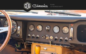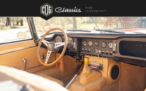 Dieser E-Type wurde ursprünglich in Palo Alto, Kalifornien, USA erstausgeliefert und fand 2009 seinen Weg nach Deutschland, wo er in den aktuellen Besitz überging. In den Jahren 2009 und 2010 wurde das Fahrzeug in Braunschweig aufwendig und mit höchster Sorgfalt restauriert. Die Restaurierung ist durch eine umfangreiche Fotodokumentation bestens belegt, sodass die gesamte Arbeit und Liebe zum Detail lückenlos nachvollzogen werden kann.