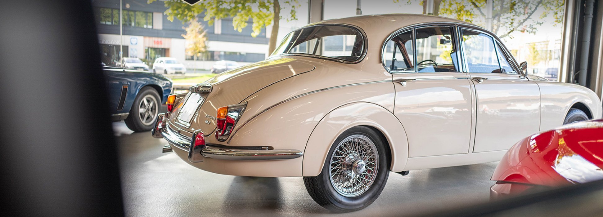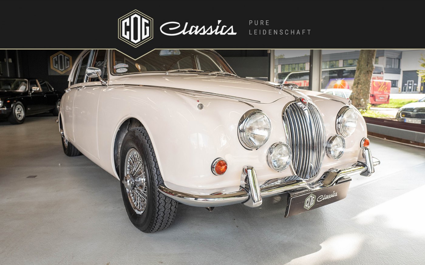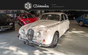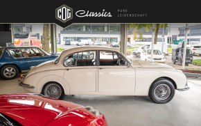 Dieser, in klassischem Weiss gehaltene Jaguar MK 2 wurde 2010 vom letzten Besitzer gekauft und wurde durchgängig von der Düsseldorfer Oldtimer Werkstatt König technisch immer erneuert und instand gesetzt. Voraussetzung für den Erwerb des MK 2 war für den Vorbesitzer damals sein gepflegter und solider Zustand. Dieser Besitzer kaufte den Wagen von einem Bekannten, der ihn 14 Jahre lang besaß. Soweit ihm bekannt war, hatte der MK2 vor 1996 noch weitere 3 Vorbesitzer. Nach der Übernahme des Fahrzeuges wurden ab 2010 sämtliche aufwendigen Arbeiten in einer Werkstatt durchgeführt. Darunter fielen die Erneuerung der Wasserpumpe und der Lichtmaschine, der Umbau auf eine elektronische Zündung, eine Getriebeüberholung, sowie alle diversen Wartungs- und Erhaltungsarbeiten. Interessant ist noch, dass von der Modellreihe 240 MK 2 mit Linkslenkung nur 620 Fahrzeuge gefertigt wurden.