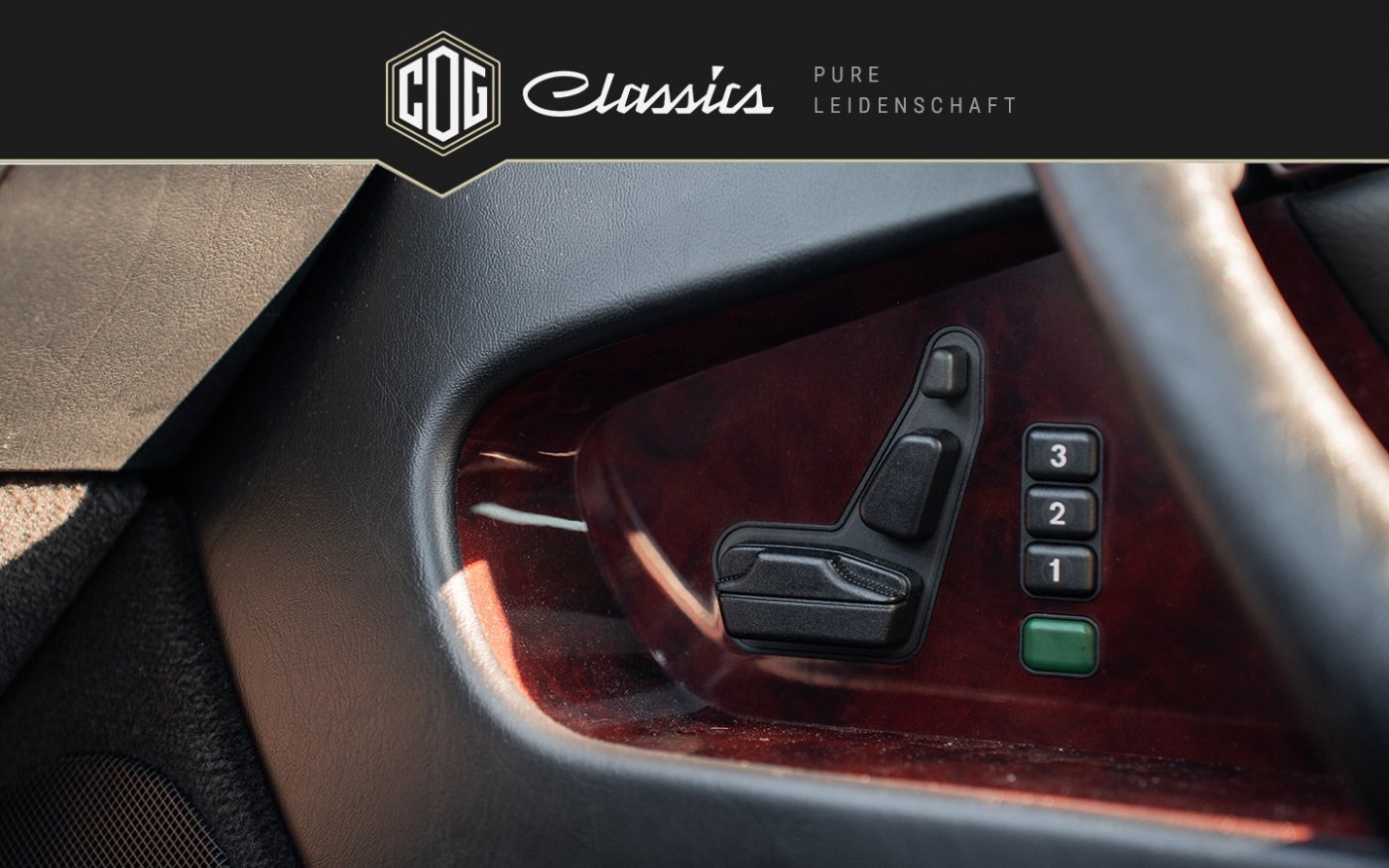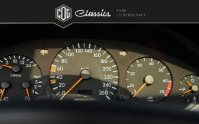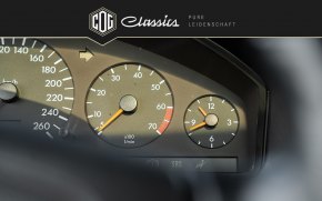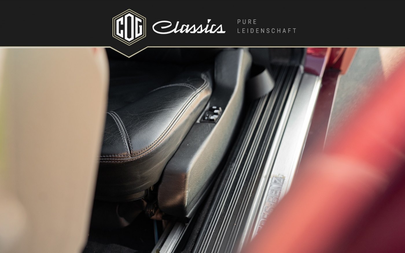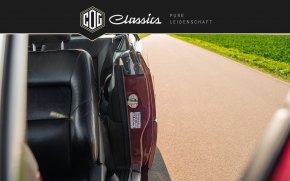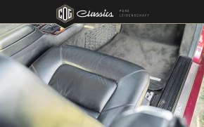 Das Erscheinungsbild dieses 28 jährigen Exemplar ist außergewöhnlich gut. Es lässt erkennen, dass der Vorbesitzer Jahrgang 1928 äußerst pfleglich mit dem Fahrzeug umgegangen ist. Der Zustand der Innenausstattung fügt sich dem Gesamteindruck und ist als außerordentlich gepflegt zu bezeichnen. Speckiges Leder, abgegriffene Knöpfe oder defekte Funktionen sucht man vergebens. Selbst die Sitzwangen sind immer noch in einem guten Zustand. Das schwere Coupe war bis 2022 in den Niederlanden zugelassen und wurde dann nach Deutschland an einen Herrn nach Bochum verkauft. Bis heute sind alle Inspektionen mit nachvollziehbaren Kilometerständen in das Scheckheft eingetragen. Uns liegt außerdem ein Gutachten von dem aktuellen Besitzer vor, sowie ein Fahrzeugcheck aus dem hervorgeht, dass dieses Coupe unfallfrei ist.