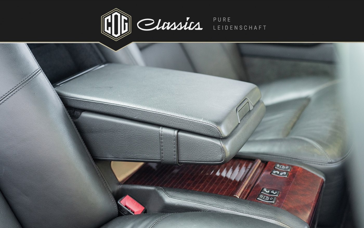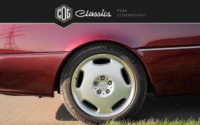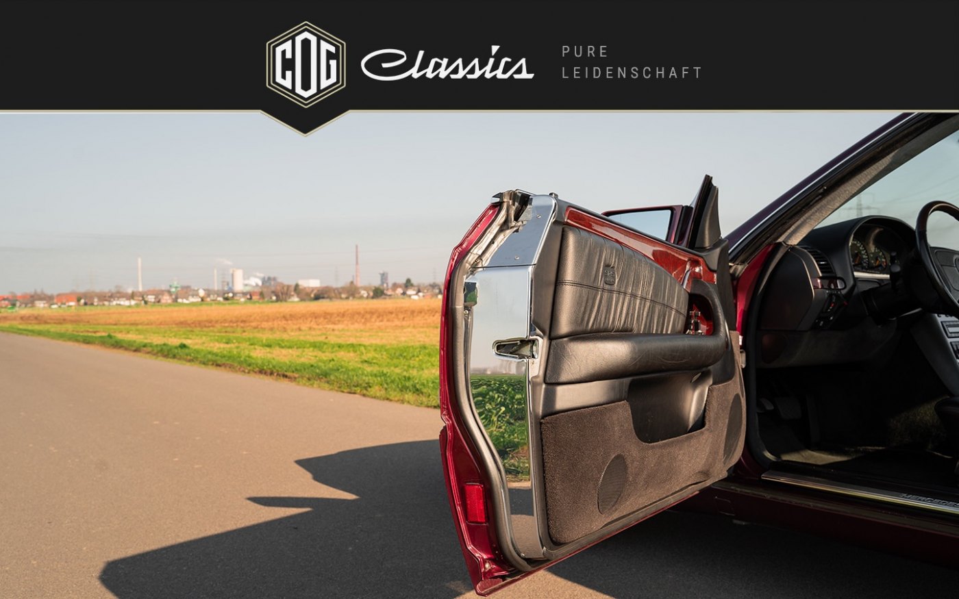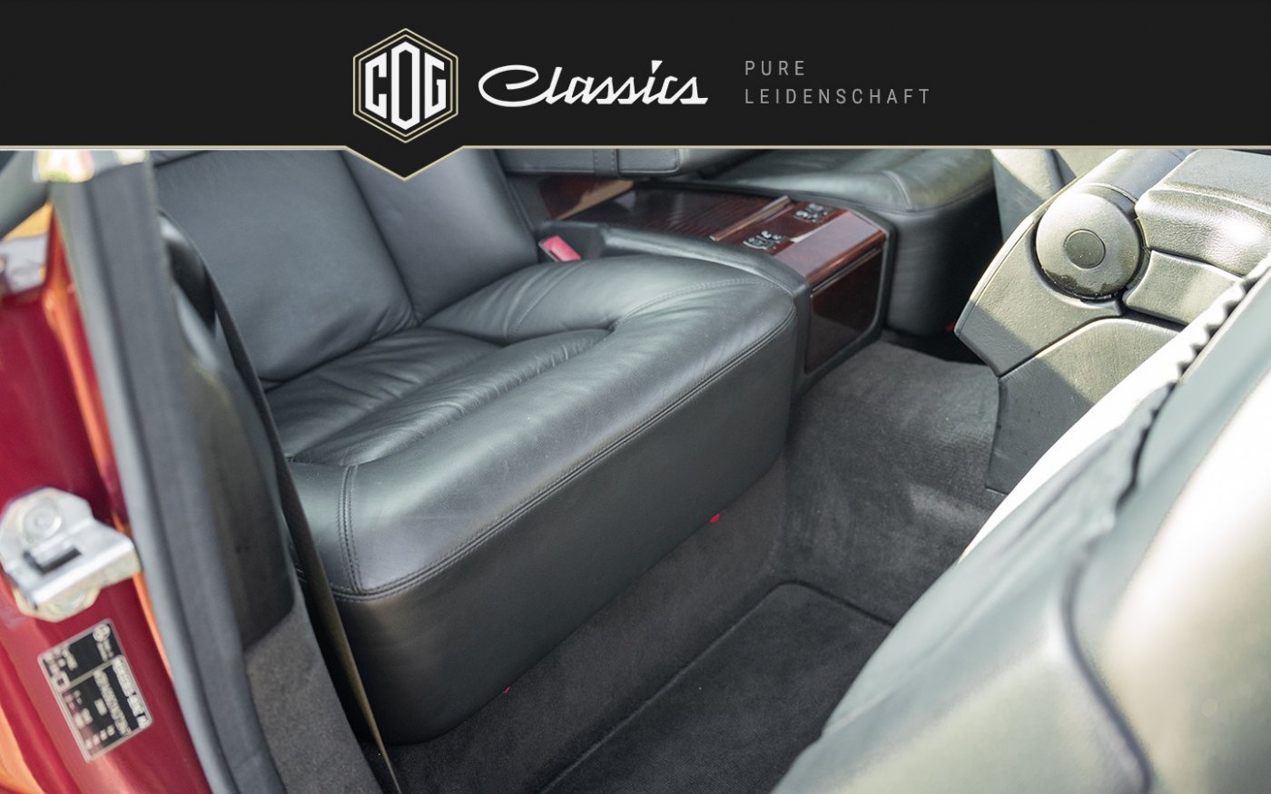 Das Erscheinungsbild dieses 28 jährigen Exemplar ist außergewöhnlich gut. Es lässt erkennen, dass der Vorbesitzer Jahrgang 1928 äußerst pfleglich mit dem Fahrzeug umgegangen ist. Der Zustand der Innenausstattung fügt sich dem Gesamteindruck und ist als außerordentlich gepflegt zu bezeichnen. Speckiges Leder, abgegriffene Knöpfe oder defekte Funktionen sucht man vergebens. Selbst die Sitzwangen sind immer noch in einem guten Zustand. Das schwere Coupe war bis 2022 in den Niederlanden zugelassen und wurde dann nach Deutschland an einen Herrn nach Bochum verkauft. Bis heute sind alle Inspektionen mit nachvollziehbaren Kilometerständen in das Scheckheft eingetragen. Uns liegt außerdem ein Gutachten von dem aktuellen Besitzer vor, sowie ein Fahrzeugcheck aus dem hervorgeht, dass dieses Coupe unfallfrei ist.