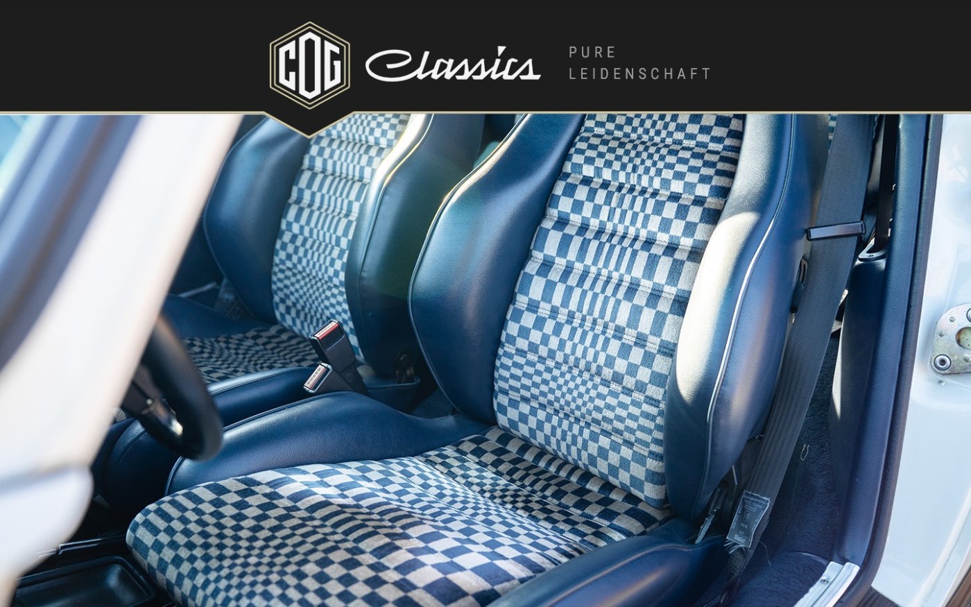 Ausgeliefert wurde das Coupé in der sehr seltenen und äußerst attraktiven Farbkombination Grandprix-Weiß mit Pascha-Teilleder in Blau. Diese Kombination ist nicht nur zeittypisch, sondern heutzutage kaum noch zu finden und verleiht dem Fahrzeug eine ganz besondere und authentische Ausstrahlung.