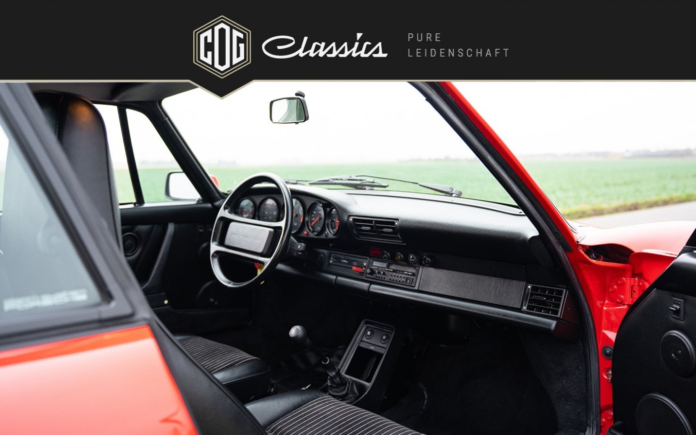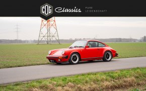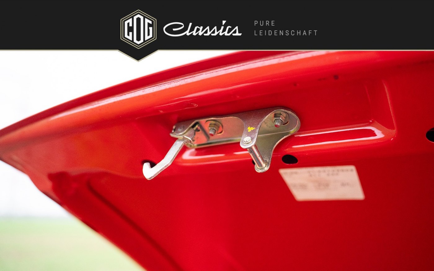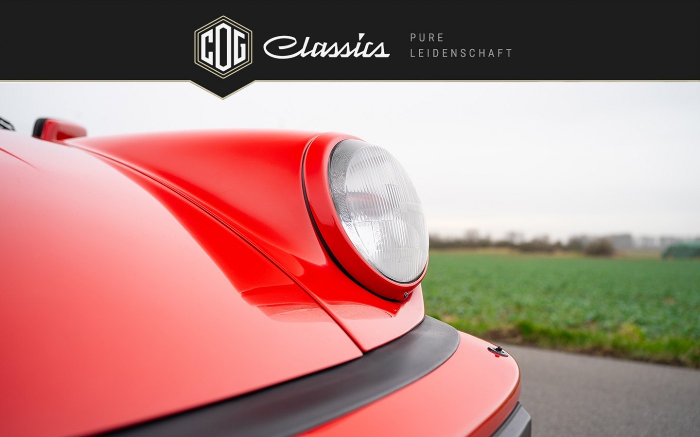 Dieser in indischrot lackierte Porsche 911 ist das allerletzte G-Modell, das 1989 an einen privaten Käufer ausgeliefert wurde. Damals wurde dieser 911 mit dem Turbo-Heckspoiler bestellt, der vom jetzigen Besitzer durch eine klassische Heckklappe ersetzt wurde. Die originale Turbo-Heckklappe ist aber natürlich beim Kauf dabei. Das Fahrzeug wechselte 2019 zu seinem jetzigen Besitzer, einem bekannten Fotografen aus dem Stuttgarter Raum, der u.a. für Porsche fotografiert. Das Fahrzeug befindet sich im Originalzustand und ist, bis auf 2 Bauteile, noch komplett im Erstlack. Das hintere rechte Seitenteil und der vordere linke Kotflügel wurden einmal neu lackiert. Der jetzige Besitzer hat unmittelbar nach dem Kauf im Jahr 2019 den gesamten Motor umfangreich überholen lassen. An dieser Stelle sei erwähnt, dass der 911er vom jetzigen Besitzer bereits in einem perfekten Originalzustand erworben wurde (Gutachten 1-). Dennoch wurden hier keine Mühen und Kosten gescheut und so wurde der Motor ausschließlich mit Porsche-Originalteilen für knapp 45.000 € wieder in ein fabrikneues Aggregat verwandelt. Der Motor wurde bei einer Laufleistung von 67.257 km überholt und ist seitdem nur ca. 2.000 km bewegt worden. Die komplette Historie mit allen Rechnungen, Dokumenten, Fahrzeugpapieren und Hintergrundinformationen zu diesem besonderen Fahrzeug liegen uns vor.