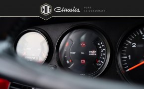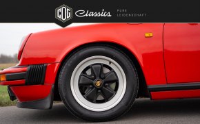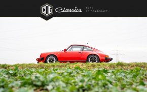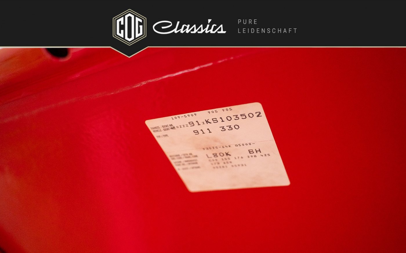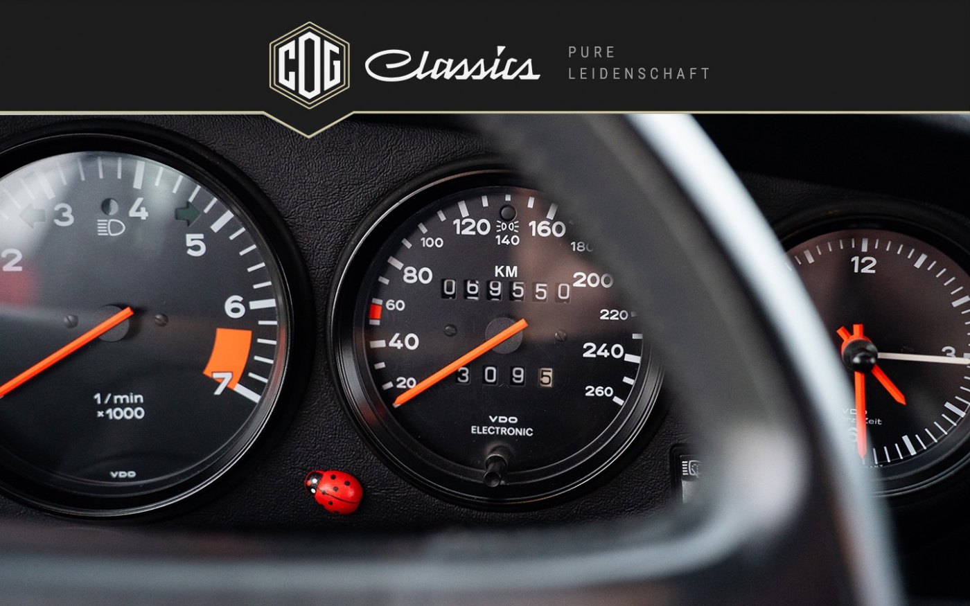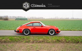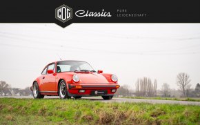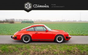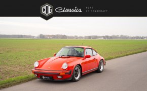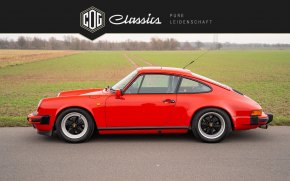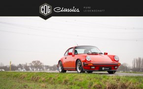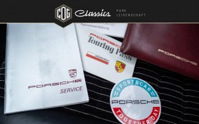 Dieser in indischrot lackierte Porsche 911 ist das allerletzte G-Modell, das 1989 an einen privaten Käufer ausgeliefert wurde. Damals wurde dieser 911 mit dem Turbo-Heckspoiler bestellt, der vom jetzigen Besitzer durch eine klassische Heckklappe ersetzt wurde. Die originale Turbo-Heckklappe ist aber natürlich beim Kauf dabei. Das Fahrzeug wechselte 2019 zu seinem jetzigen Besitzer, einem bekannten Fotografen aus dem Stuttgarter Raum, der u.a. für Porsche fotografiert. Das Fahrzeug befindet sich im Originalzustand und ist, bis auf 2 Bauteile, noch komplett im Erstlack. Das hintere rechte Seitenteil und der vordere linke Kotflügel wurden einmal neu lackiert. Der jetzige Besitzer hat unmittelbar nach dem Kauf im Jahr 2019 den gesamten Motor umfangreich überholen lassen. An dieser Stelle sei erwähnt, dass der 911er vom jetzigen Besitzer bereits in einem perfekten Originalzustand erworben wurde (Gutachten 1-). Dennoch wurden hier keine Mühen und Kosten gescheut und so wurde der Motor ausschließlich mit Porsche-Originalteilen für knapp 45.000 € wieder in ein fabrikneues Aggregat verwandelt. Der Motor wurde bei einer Laufleistung von 67.257 km überholt und ist seitdem nur ca. 2.000 km bewegt worden. Die komplette Historie mit allen Rechnungen, Dokumenten, Fahrzeugpapieren und Hintergrundinformationen zu diesem besonderen Fahrzeug liegen uns vor.