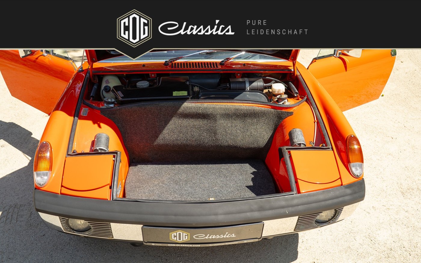 Im Dezember 2022 wurde der Wagen an einen unserer Kunden in Berlin verkauft, der sich kurz darauf – eher spontan – für einen frisch eingetroffenen 914/6 in Grün entschied. Der orangene 914/4 kam dann wieder zu uns zurück und steht nun erneut im Kundenauftrag zum Verkauf.